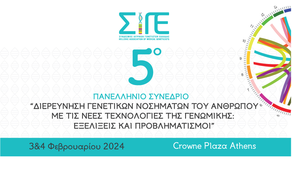 Τελικό Πρόγραμμα | 5o Πανελλήνιο Συνέδριο ΣΙΓΕ “∆ιερεύνηση Γενετικών Νοσημάτων του Ανθρώπου με τις Νέες Τεχνολογίες της Γενωμικής: Εξελίξεις και Προβληματισμοί” | 3&4 Φεβρουαρίου 2024 | Crowne Plaza