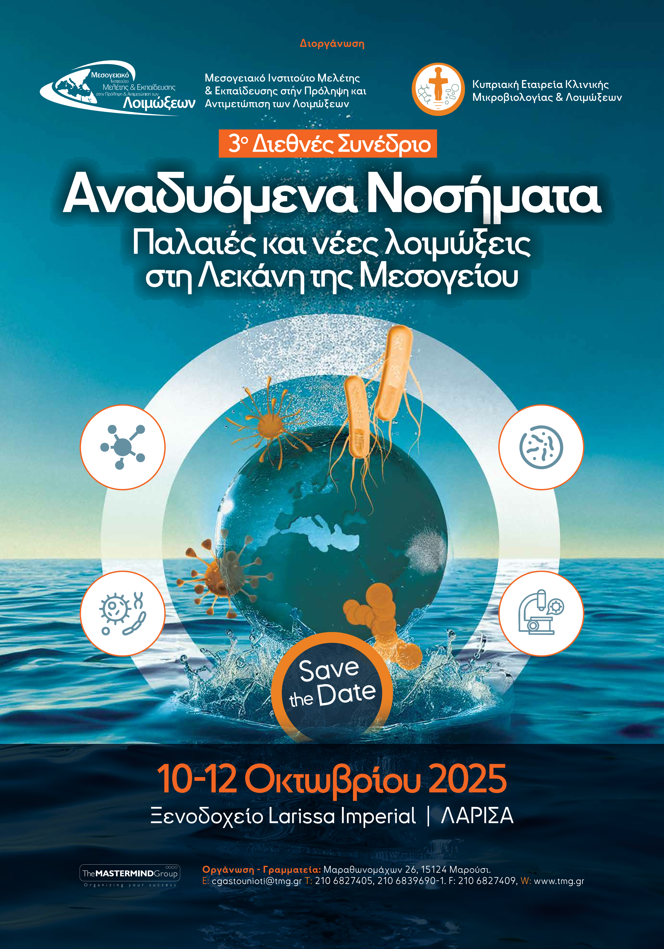SAVE THE DATE_3ο ΔΙΕΘΝΕΣ ΣΥΝΕΔΡΙΟ: ΑΝΑΔΥΟΜΕΝΑ ΝΟΣΗΜΑΤΑ: ΠΑΛΑΙΕΣ & ΝΕΕΣ ΛΟΙΜΩΞΕΙΣ ΣΤΗ ΛΕΚΑΝΗ ΤΗΣ ΜΕΣΟΓΕΙΟΥ | 10 - 12 ΟΚΤΩΒΡΙΟΥ 2025 | ΛΑΡΙΣΑ